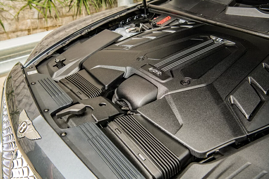 這個速度錶的阿拉伯數字部分也非常有趣,由活像剛學懂123的幼兒逐一把數字唸出,到變成角子老虎機的提子、檸檬、西瓜和7字急急如律令般快到眼花,中間相隔的只是踏一下油門這個低技術動作,波箱急跌一兩個檔位到轉速每分鐘3,000,前後的轉折等如早排的天氣一下子由天晴發展到行雷閃電,殺得大家一個措手不及。即使它坐擁2.4公噸的高壓脊,馬力和扭力又同輕盈一截的Cayenne Turbo完全相同,這副新引擎也沒有令Bentayga V8的運輸效率與雙層巴士齊名,反而似部彈射起步的跑車。唯V8版有一個難解之處,車重不知何故與W12近乎相同,吃不到偷輕甜頭之下,0-100多出0.4秒。