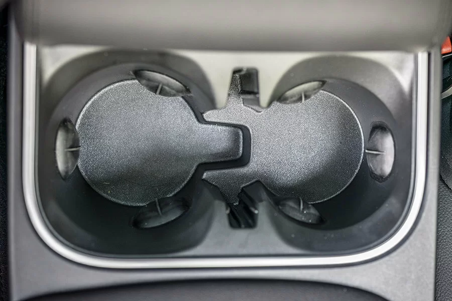 買SUV期望會被無盡的置物空間重重包圍,E-Pace手枕儲物格夠深,波棍前面的空間可吞下一副沒有屈摺鏡臂的太陽眼鏡,門邊更厲害,車門沒有安裝大直徑喇叭膜,開拓出的儲物位似條大腸足夠埋藏至少兩個水瓶、汽水罐、入油單和抹過鼻涕紙巾等,活像個小型背包。呀,還看到天花板有個眼鏡盒,不過弧面大的運動眼鏡就放不下了。