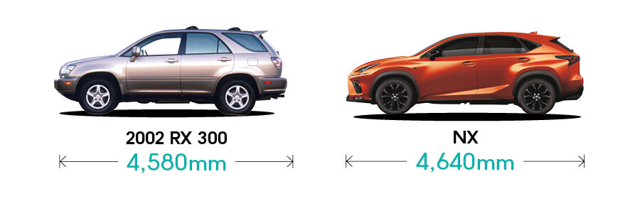 日本車都有同樣命運,初代Lexus RX比今代低一級的NX少60mm。奉勸各位首代RX車主盡快接受殘酷現實。
