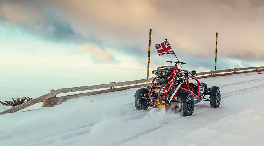 不過我們這邊也不遑多讓,腳下的曲折道路簡直勝似派克峰;白雪遍地的派克峰。與此同時我手上則有一部全世界最好玩的汽車,而且我發覺只要有一根液壓手掣、Fox長行程吸震筒和235bhp後驅火力在手,自己原來並非那麼想滑雪或騎單車。這條鋪滿白雪的山道路面寬闊,既有視野良好的上坡彎角,又有髮夾彎,道路兩旁還堆積了軟綿綿的雪堤。好得很,放馬過來吧!